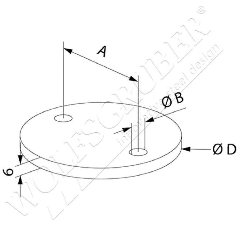 Rondelle plate avec 1 trou, en acier inoxydable 304 brossé, de diamètre 56 mm. Le montage s'effectue avec du silicone.