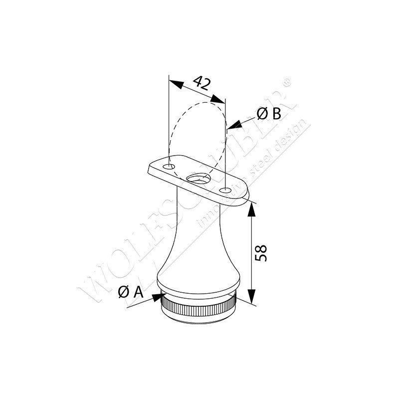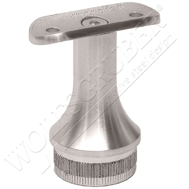 Support de main courante orientable avec une plaque d'adaptation, en acier inoxydable 304 brossé, à visser. Pour tube de diamètre 42,4 mm. Rondelle de dimension 68x5 mm comosée de 3 trous. Tige de diamètre 14 mm.