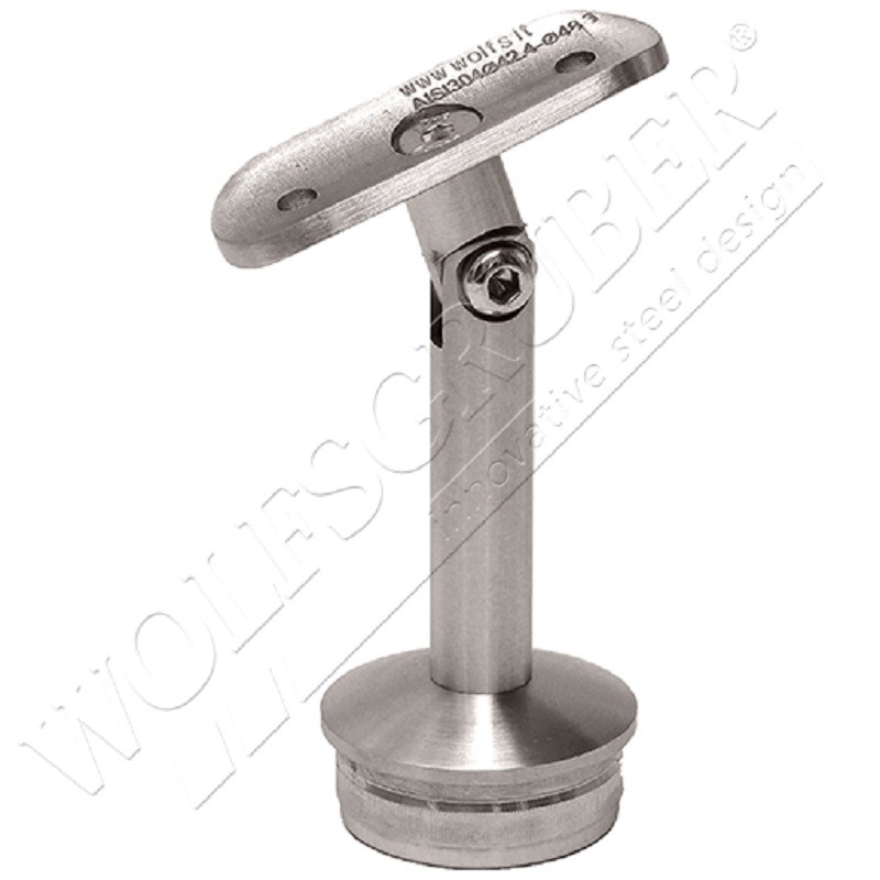 Support de main courante orientable avec une plaque d'adaptation, en acier inoxydable 304 brossé, à visser. Pour tube de diamètre 42,4 mm. Rondelle de dimension 68x5 mm comosée de 3 trous. Tige de diamètre 14 mm.