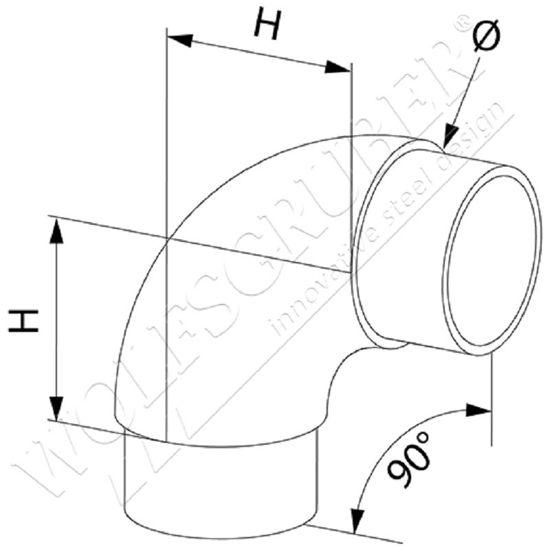 Coude réglable de 90° à 180°, en acier inoxydable 304 brossé, de hauteur 24 mm, à encoller. Pour tube de diamètre 33,7 mm.