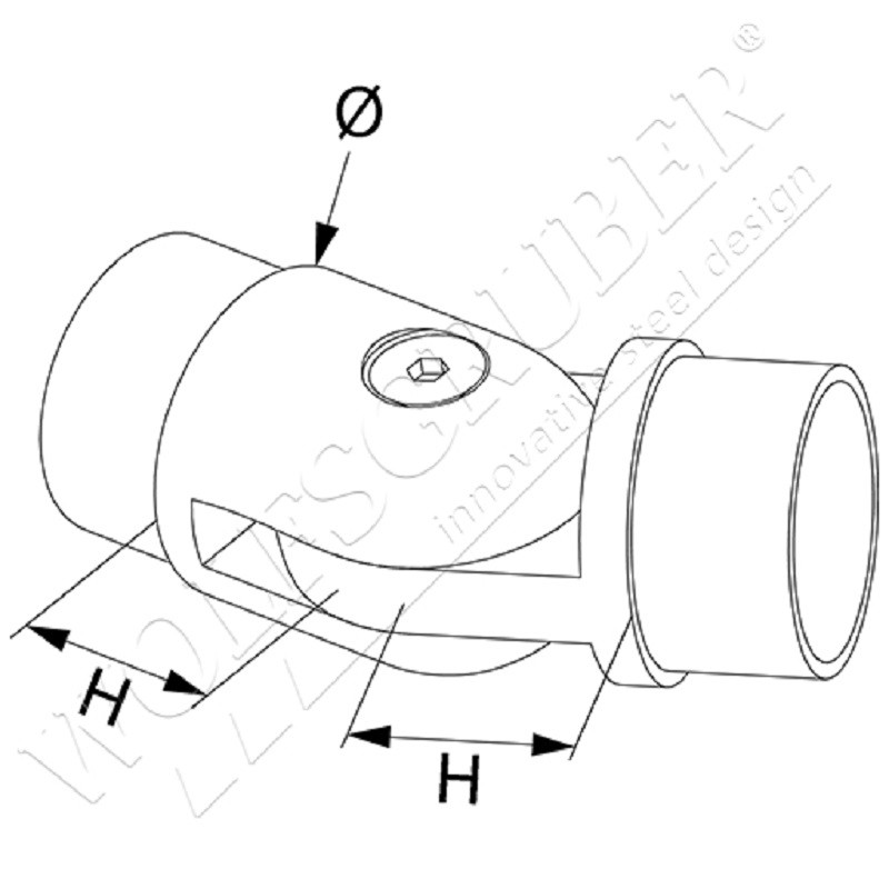 Coude réglable de 90° à 180°, en acier inoxydable 304 brossé, de hauteur 24 mm, à encoller. Pour tube de diamètre 33,7 mm.