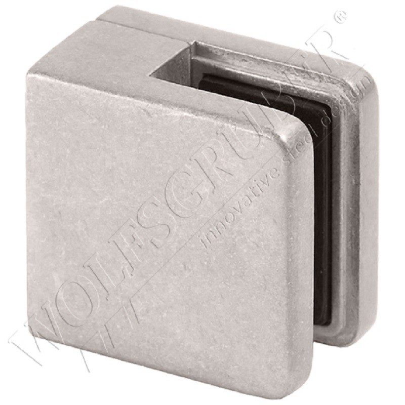 Pince à verre de forme semi-ronde, en acier inoxydable 316, de dimension 50x40 mm, pour montage sur tube de diamètre 33,7 mm. Conçue pour un verre d'une épaisseur de 8,76 mm (44/2).