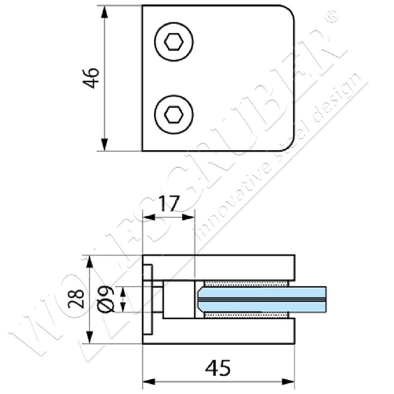Pince à verre semi-ronde, en acier inoxydable 316, de dimension 62x45mm, pour montage sur tube de diamètre 42,4 mm. Conçue pour un verre d'une épaisseur de 8,76mm (44/2). Les goupilles de sécurité sont incluses. Diamètre de la vis de fixation : M8.
