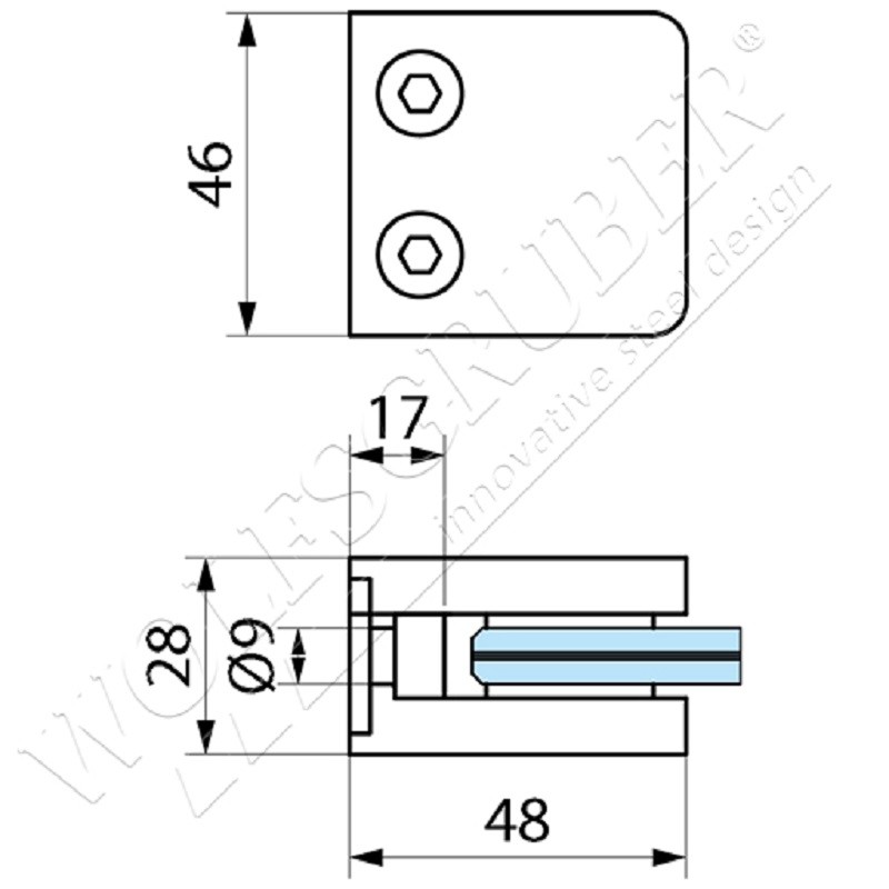 Pince à verre semi-ronde, en zamak, de dimension 62x45mm, pour montage sur tube de diamètre 42,4 mm. Conçue pour un verre d'une épaisseur de 8,76mm (44/2). Les goupilles de sécurité sont incluses. Diamètre de la vis de fixation : M8.