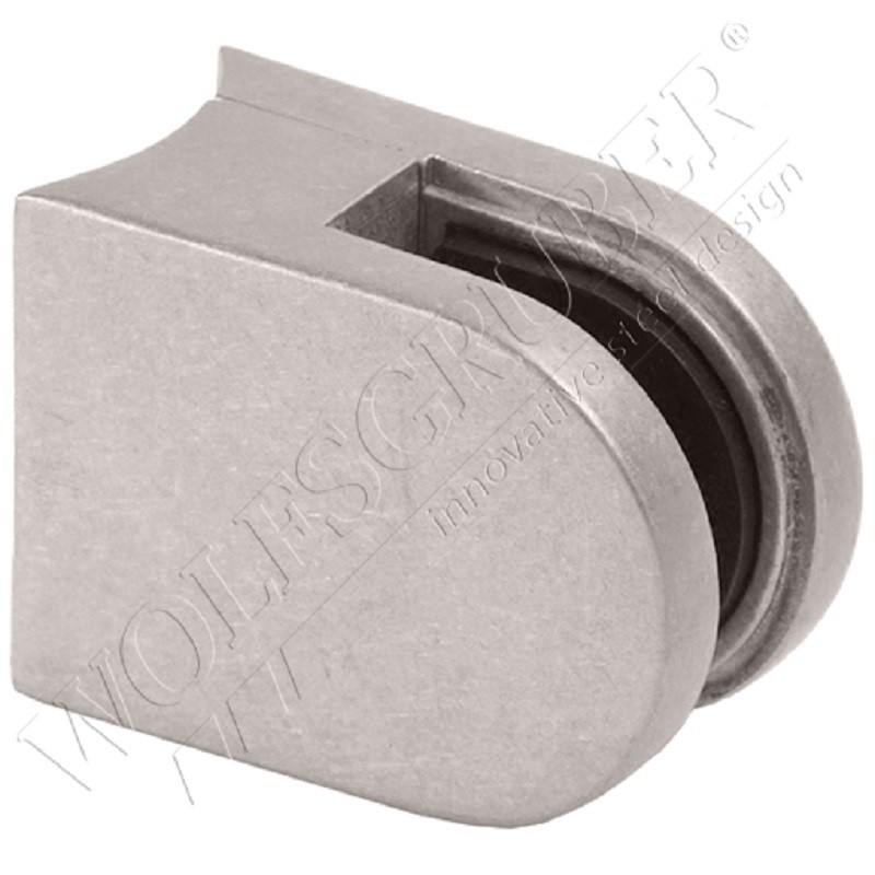 Pince à verre semi-ronde, en acier inoxydable 316, de dimension 50x40 mm, pour montage sur plat. Conçue pour un verre d'une épaisseur de 6,76 mm (33/2).