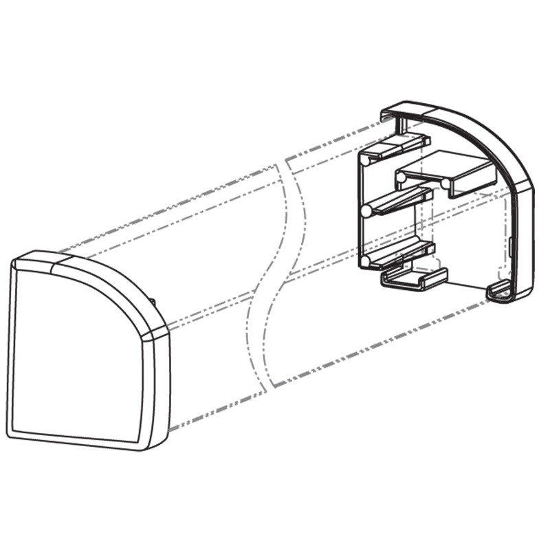 Platine de guidage, en aluminium de couleur blanc, de longueur 100 mm, pour fixation sur l'intérieur d'un poteau. Avec patin de glissement auto-ajustable en polyacétal.