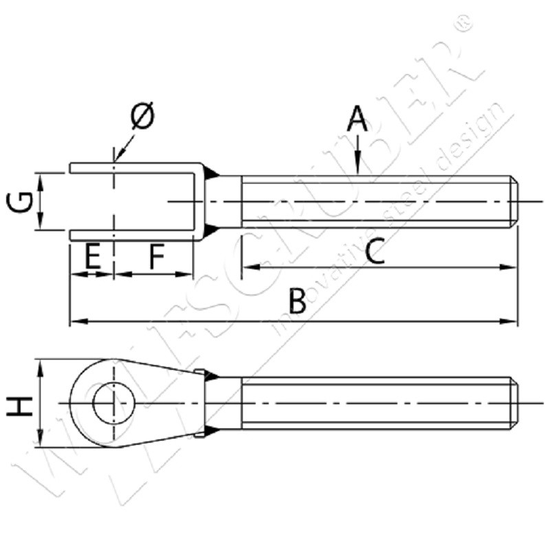 Support de câble diamètre 4, 5 ou 6 mm, en acier inoxydable 304, avec écrou gauche, pour tube de diamètre 42,4 mm. Diamètre de filetage M6.