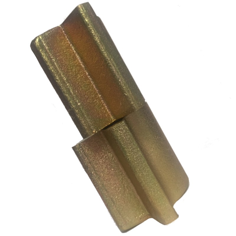 Paumelle roulée avec 3 ailes longues ouvertes, en acier, à souder. Elle est montée sur un axe dégondable de diamètre 20 mm, d'une longueur de 180 mm et avec une capacité de reprise de charge de 120 kg.