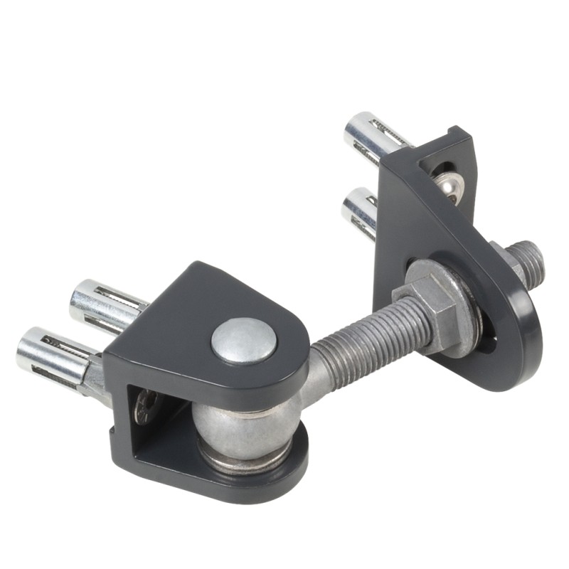 Charnière 180° galvanisé à chaud avec réglage en 4 dimensions. La profondeur, hauteur et l’espacement entre le poteau & le portail sont réglables après installation. Pièces à souder : acier électrozingué. Tige filetée = 110 mm.