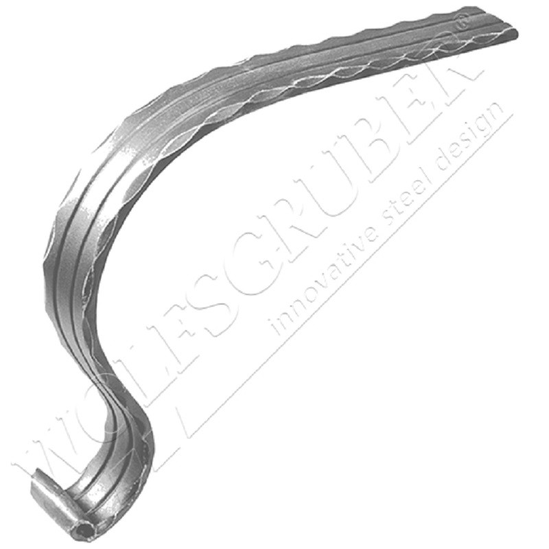 Main courante, en fer forgé, martelée à chaud sur les côtés (à l'intérieur) de dimension 41x8 mm et de longueur 3000 mm.
