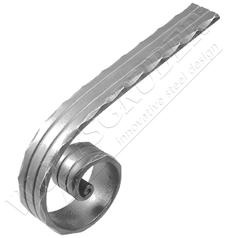 Main courante, en fer forgé, martelée à chaud sur les côtés (à l'intérieur) de dimension 41x8 mm et de longueur 3000 mm.