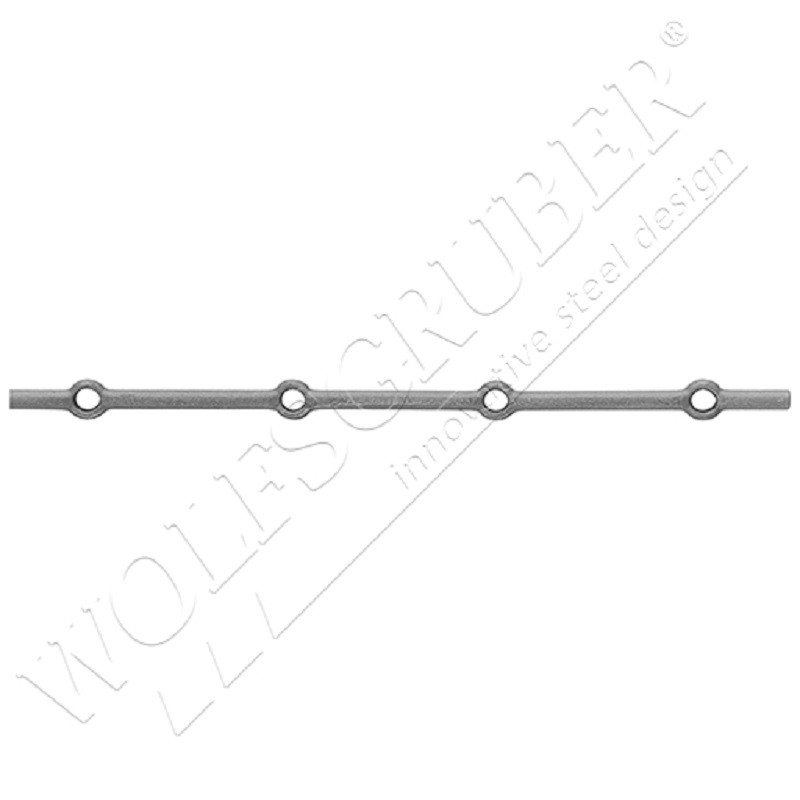 Barreau en fer forgé de diamètre 12 mm, longueur de 1000 mm, avec 2 noeuds éloignés de 380 mm. Le poids de la barre est de 1,80 kg. Pour décorer vos portillons, portails et garde-corps en fer forgé.