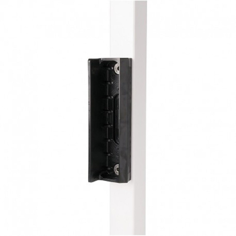 Serrure de sécurité enfant pour portillon de piscine avec mécanisme inox et coffre polyamide blanc. La poignée Réf. Kidloc nécessite 2 actions simultanées pour libérer la serrure évitant l’accès aux enfants. Se monte sur un tube carré de 40 mm.
