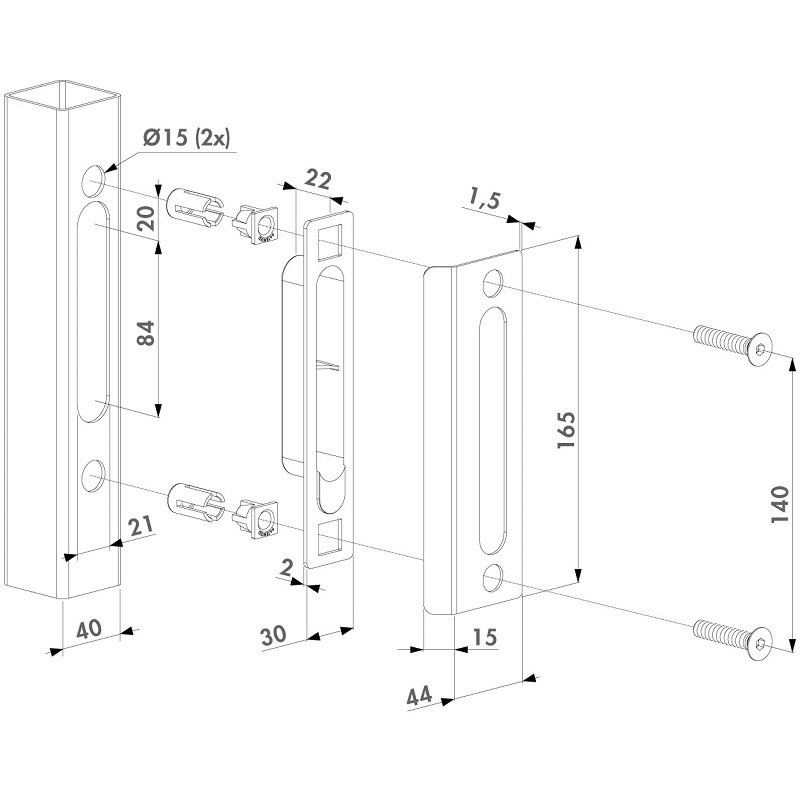Profil à souder en acier brut de longueur 2000 mm préparé pour gâche aluminium référence SHKM. Profil prêt à souder, facilite la fabrication de vos portes.