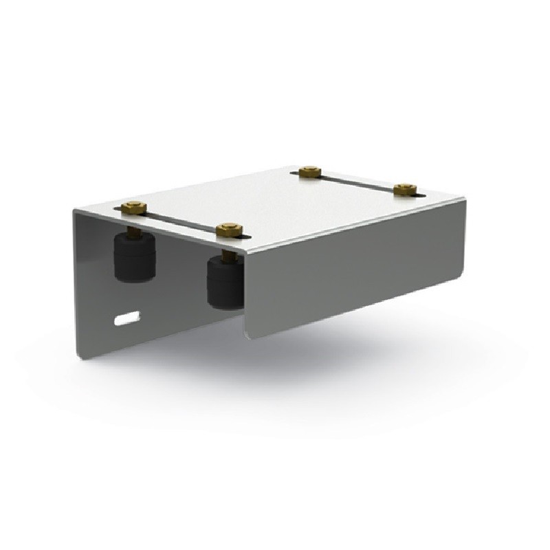 Butée de réception supérieure, en acier, pour portail coulissant avec tampon gomme de diamètre 30 mm. Sa dimension est de 105x55 mm, et elle est réglable de 44 à 84 mm.
