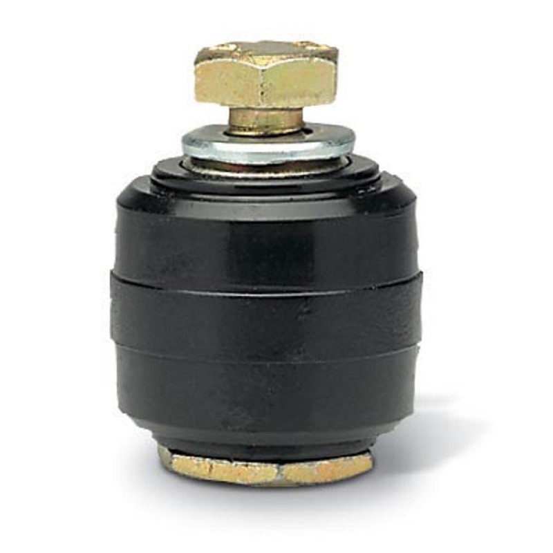 Plot de guidage cylindrique en nylon noir avec protection, de diamètre 30 mm, hauteur 40 mm, monté sur un axe fileté M14 de longueur 79 mm.