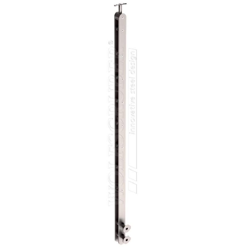 Montant rond de diamètre 42,4mm et épaisseur 2mm, en acier inoxydable 304 brossé, pour montage latéral. Il se compose de 2 pinces à verre à droite et main-courante en axe. Il mesure 1000 mm. L'espace entre les 2 pinces est de 558 mm. Embout inclu.