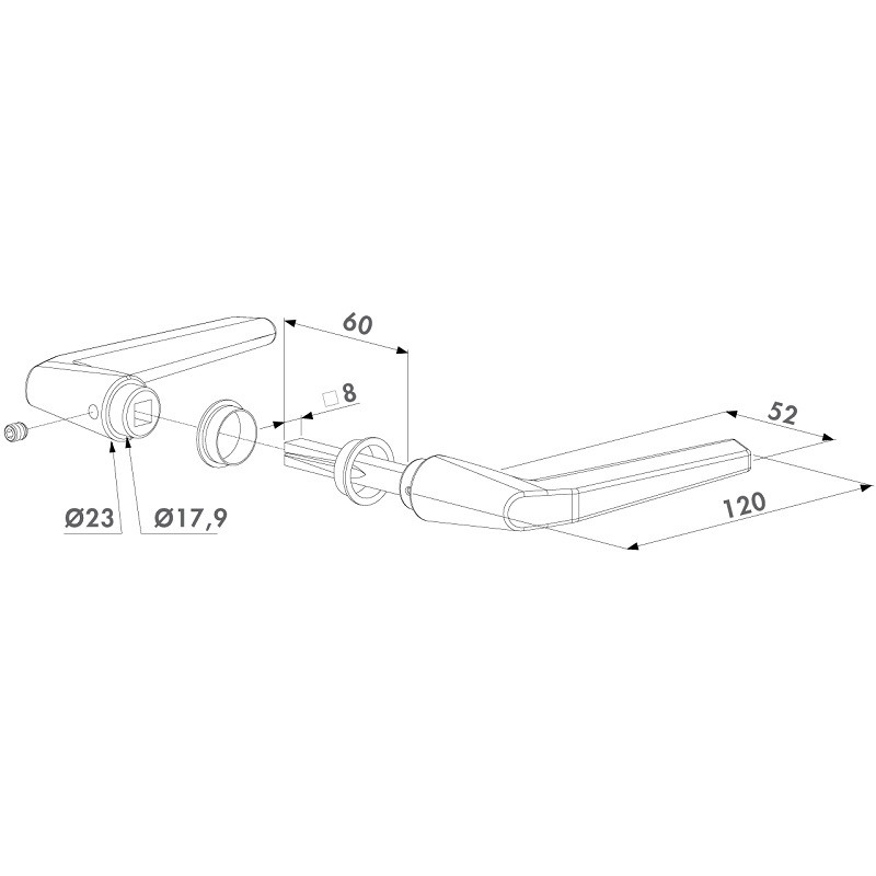 Paire de poignées en aluminium anodisé, pour serrures hybrid de Réf. H-METAL. Carré de 8 mm de longueur 60 mm. Contient une vis pointeau de chaque côté.