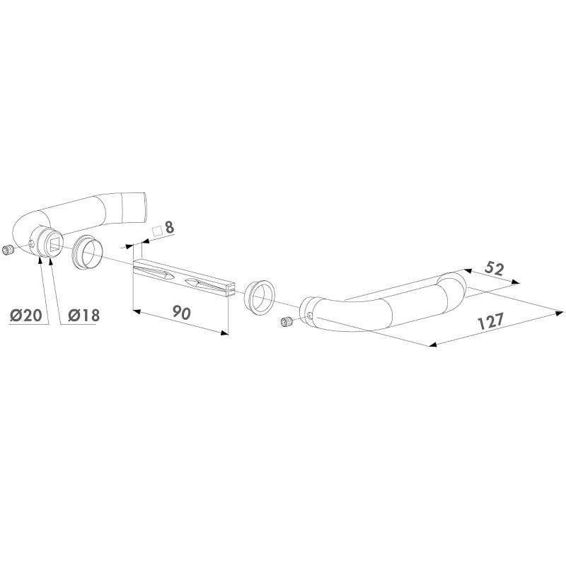 Paire de poignées en aluminium anodisé, pour serrures hybrid de Réf. H-METAL. Carré de 8 mm de longueur 60 mm. Contient une vis pointeau de chaque côté.