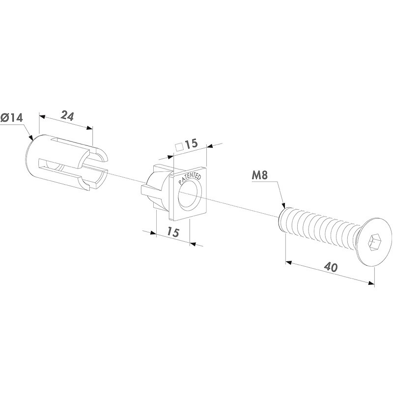 Paire de poignées en aluminium anodisé, pour serrures hybrid de Réf. H-METAL. Carré de 8 mm de longueur 60 mm. Contient une vis pointeau de chaque côté.
