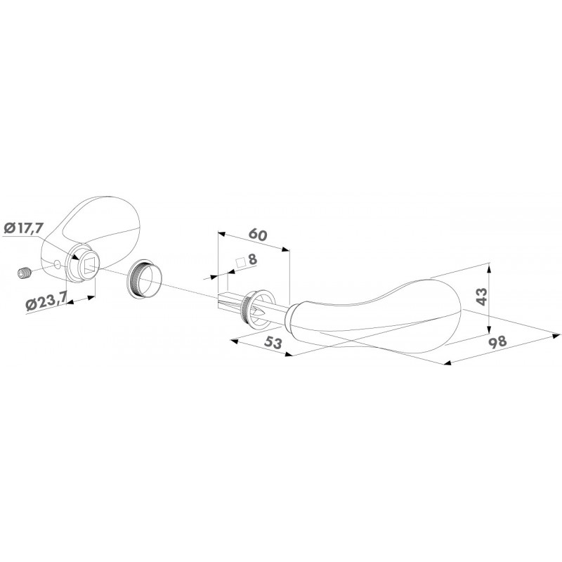 Paire de poignées en aluminium anodisé, pour serrures hybrid de Réf. H-METAL. Carré de 8 mm de longueur 60 mm. Contient une vis pointeau de chaque côté.