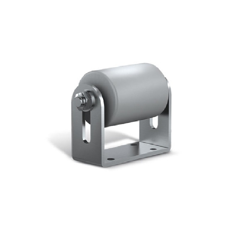 Roue de support, en acier, de diamètre 74 mm, avec roulement 6203, montée sur une plaque de fixation de 132x69x34 mm, qui supporte une charge maximale de 400 kg. Pour portail autoportant gamme médium.