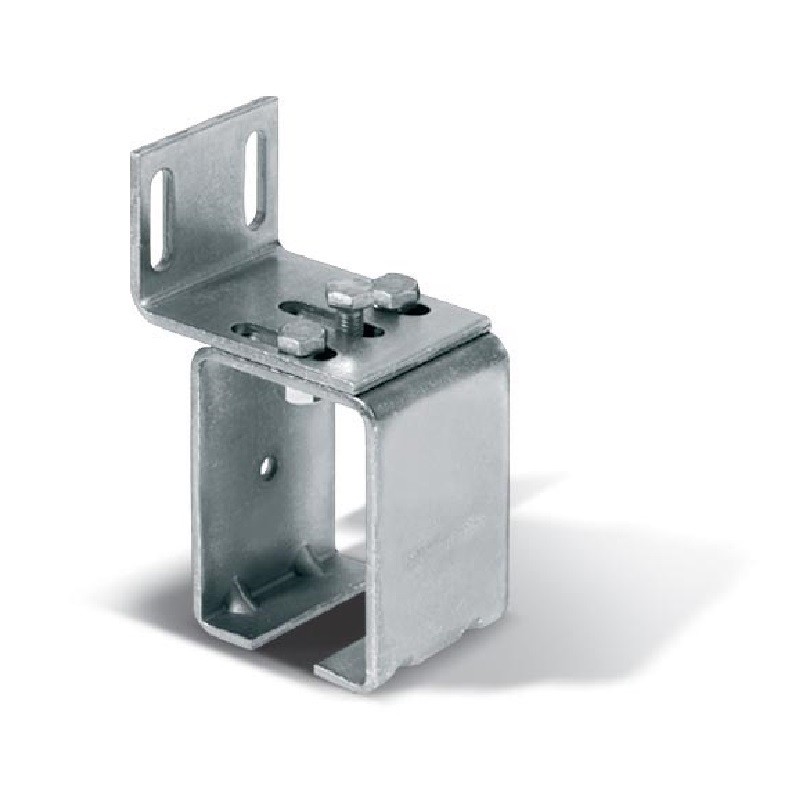 Support de fixation au plafond monté sur une platine réglable de 120x60 mm, compatible avec un monorail de 42x56mm (réf 81Z). Ce support possède une capacité de reprise de charge de 150kg. Il doit être positionné tous les 750 mm.