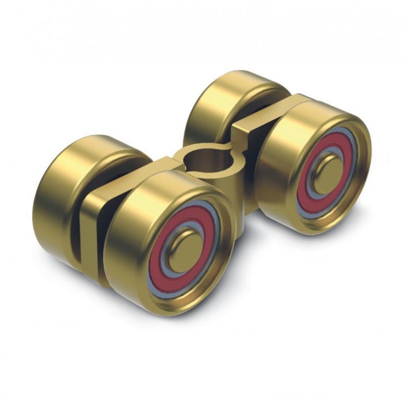 Butée de forme ronde, en acier, pour portes de type accordéon. Sa longueur est de 41 mm. Aussi appelé guide pour portes à côtés cassés et portes pour piétons. Pour portes gauches et droites.