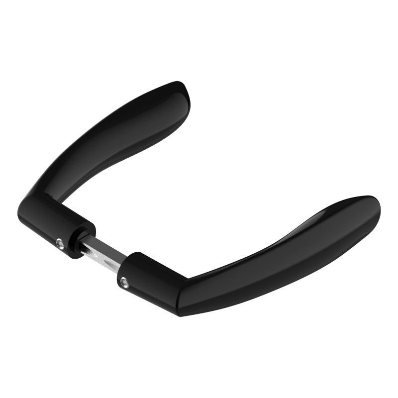 Rosace en zamac de couleur noir avec adhésif. Impératif de réaliser les formes d'usinages adaptées au passage du cylindre et de la béquille. Adhésif compatible avec support laqué contenant du PTFE (Teflon).