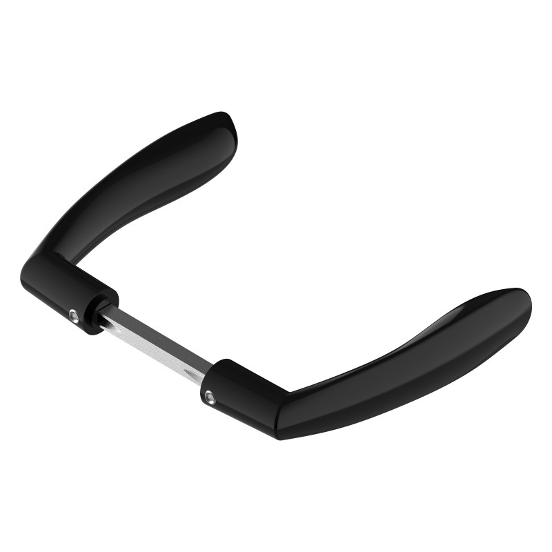 Rosace en zamac de couleur noir avec adhésif. Impératif de réaliser les formes d'usinages adaptées au passage du cylindre et de la béquille. Adhésif compatible avec support laqué contenant du PTFE (Teflon).