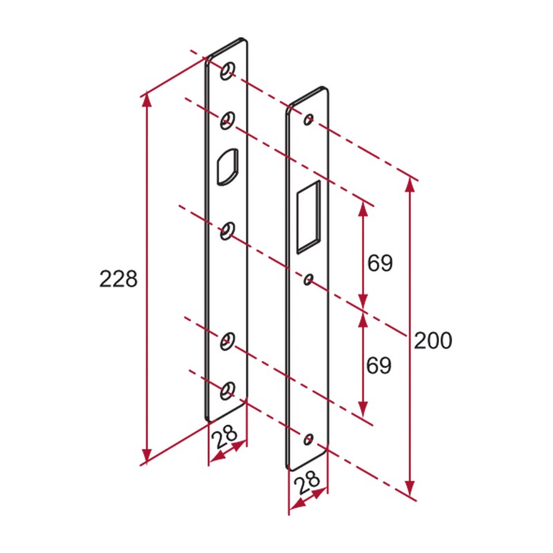 Gâche réversible pour cadre aluminium spécifique en composite noir. Ses dimensions sont 80x30 mm et épaisseur 6,5 mm. L'entraxe de fixation est de 60 mm. Compatible avec les serrures de référence "GK" ou "GK2". Adaptée pour un montage rivet pop.