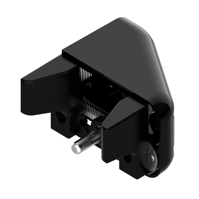 Gâche en zamac couleur noir, pour portail coulissant bois, PVC, d'une épaisseur de 30 à 120 mm. Compatible avec les serrures GK et GJ. L'équerre est en inox et mesure 5 mm. Elle possède une brosse en nylon noir pour protéger l'ouverture du boîtier.
