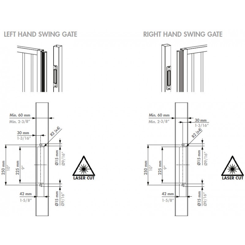 Profil en aluminium thermolaqué (recoupable), de 2 mètres pour une finition parfaite entre 1 ou plusieurs ventouses montées en applique ("MAG3000" ou "MAGMAG3000"). Fixation sur le pilier de réception pour éviter de hurter la ventouse.