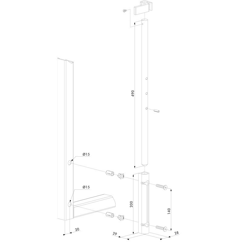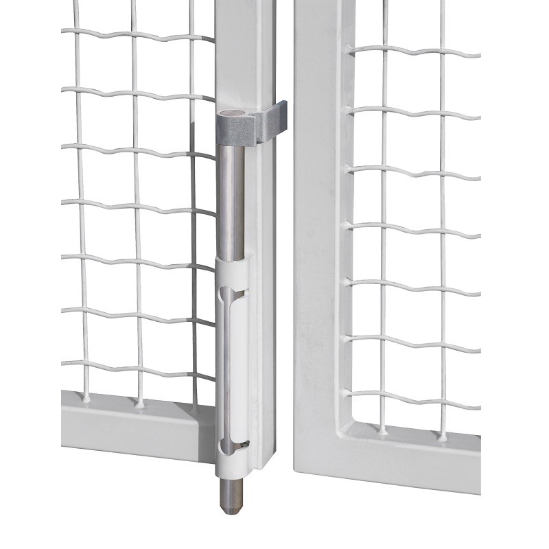 Verrou de sol standard avec tige en aluminium (type VSA) et système de fixation innovant Quick-Fix pour profil carré de 40x40 mm ou plus. Le verrou de sol se verrouille entre les deux vantaux. Montage très facile sur portail existant.